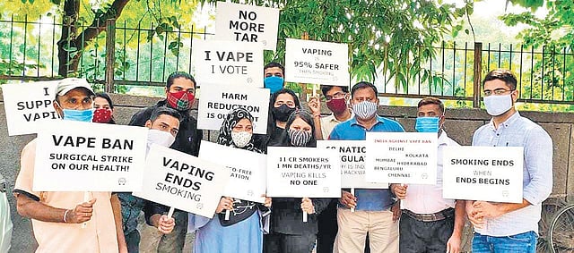 HYDERABAD: Marking the anniversary of India’s vape ban as ‘black day’, the Association of Vapers India (AVI), held a protest in Hyderabad recently. Protests were held in Delhi, Bengaluru and Kolkata too.