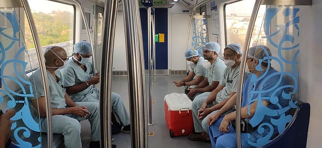 "We decided to take the metro and not road route as it was a 21 km journey via several traffic-intensive areas which will take at least 60 minutes or more due to certain flyover works. The metro will take barely 30-40 minutes," said Anoop Antony, Transplant coordinator of Apollo Hospital, Jubilee Hills.