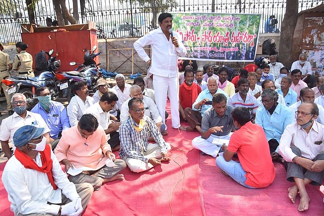 After the culmination of their 200-kilometre walk, they staged a Maha Dharna at Dharna Chowk in Hyderabad on Thursday.