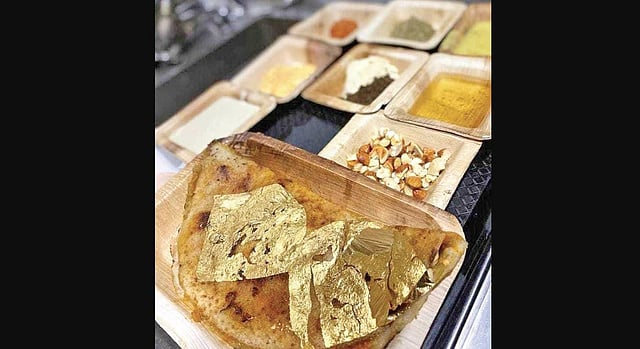 On the other hand, Abhiram Mitta, founder of House of Dosas, tells CE about what inspired his gold dosa, also known as 916 KDM dosa. “Using gold in cuisines is not new, it has been a part of my culture (Kadappa) for a long time. The idea was to add a hint of native feeling to the dishes and that is why the gold leaves, which are used for decoration, are brought in from my native place.”