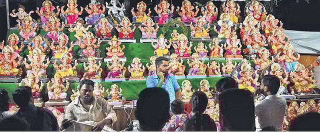 “It took us around two months to complete the `1 crore idol. Over 80 people toiled to give a shape to the idol using clay and other eco-friendly materials,’’ chief sculptor of the idol C Rajendran said. Services of clay artiste Joga Rao from Odisha were utilised.