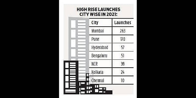 On the other hand, the data shows the share of high-rises had shrunk to 52 per cent in the country in 2021 against 63 per cent in 2019. However, comparatively high-rise launches have increased from 291 in 2020 to 614 in 2021. The National Capital Region (NCR) saw the maximum decline of 32 per cent in total share of high-rises in 2021, followed by Pune with 17 per cent.