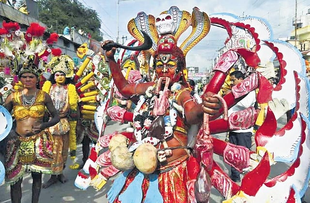 Thousands devotees lined up along the procession route to witness the glittering and colourful convoy of Ghatams. Various temple committees erected daises along the route to welcome the procession and devotees, while artistes from different parts of the State performed cultural programmes while youngsters danced to the pulsating drum beats with Potharajus taking the centre stage.