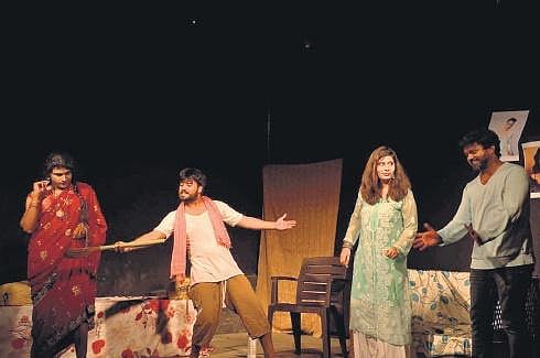 Through a series of hilarious interactions with them, Mandu realises they are all far from what she wants in her partner. She wakes up and faces the reality — that her husband is not bad after all. Despite the sultry and humid evening, the venue was full of a crowd which was seen enjoying the play thoroughly. When the sister characters keep calling out to the house-help, ‘Jhaadu laa’, what ensues is a laugh riot.