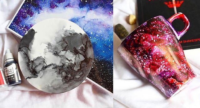 Marzia uses ink on different mediums, but Resin is still her favourite. “It’s a free-flowing substance which is oddly satisfying, therapeutic to watch. The most amazing part of my experiment was learning how to control the medium. In the initial stage, I started experimenting with abstract works. I slowly focused on doing a definite form of Astro art with them. Proceeding further, we started conducting workshops. We help people understand the medium’s different surfaces, such as abstract, floral, seascape, Astro art,” says she.