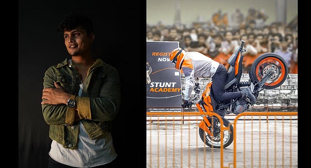 While he learned through trial and error, he hopes others don’t have to take the same route. That gave birth to the idea of founding Telangana’s first bike-stunt academy. “I realised that you can learn with little to no injury. Not only will there be better safety gear, we also have machines that ensure the rider or his bike don’t even fall to the ground.”