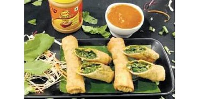 200gm peanut butter | 2 sprigs of spinach | 4 pieces of roll sheet | 300ml oil | 20gm butter