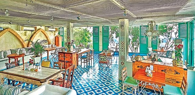 Their handmade pasta and ethos close to authentic Italian cuisine make up a whole new experience of Italy very close to home. Next up is a travel destination that is Instagram famous for its white cobblestones, pebble beaches, whitewashed cliff setting, and pathways of Santorini Island, Greece. Cafe architecture inspired by the Greece destination, such as La Vantage and Olive Bistro, is perfect for the picturesque social media glam. The life-size windows and pebble flooring at Jubilee Hills's La Vantage and the pathways, teal/white deco, and tranquil lakeside view of Olive Bistro and Bar transport you to the exotic Mediterranean locale.