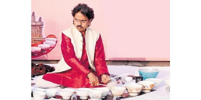 The performance of Milind Tulankar was nothing short of spellbinding, as he coaxed melodic harmonies from the porcelain bowls, each note as delicate and unyielding as he played songs from Roja film, then played Raga Parameshwari and concluded with a performance of Bhairavi Dhun. Overall, the concert at the Buddha Statue in Hussain Sagar Lake was a symphony of sound and sensation, a harmonious blend of the ancient and the modern.