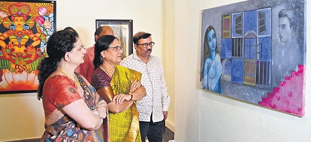 Congratulating women who came forward to express their ideas at the exhibition, the chief guest, Surabhi Vani said that while many restrictions were posed upon women in her own days, it is overwhelming to see women coming forward to express themselves. She said, “In our days, dancing on the stage, singing, reading novels or any form of public performance was prohibited for girls. There was no question of painting a picture in a studio. We could not do nude or semi-nude paintings.”