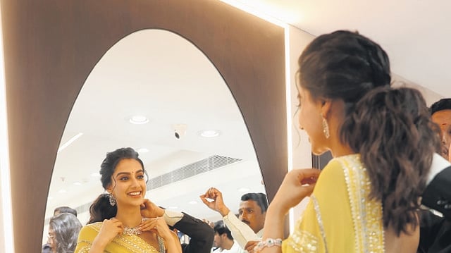 HYDERABAD : Regardless of the storyline, Meenakshi Chaudhary captivated the hearts of audiences with her impeccable portrayal of a ‘Telugu Ammai’ in the recent film “Guntur Kaaram”. A former Miss India Runner-up, she embarked on her acting journey with the Telugu film “Ichata Vahanamulu Niluparadu” and garnered acclaim for her remarkable performances in “Khiladi” and “HIT 2”. Recently, she graced the launch of Kalyan Jewellers’ special Ugadi collection, exuding charm and elegance. CE had the privilege to delve into her fashion choices, upcoming projects, and more.