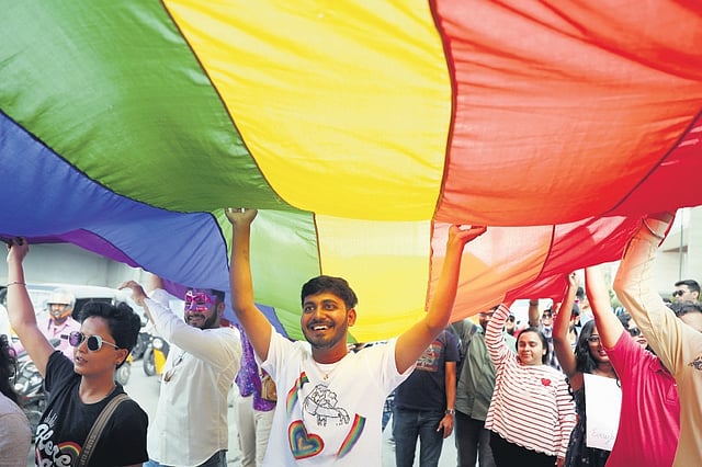 TNIE lensman Sri Loganathan Velmurugan captured the parade-goers as they marched on the street with rainbow flags and placards, with messages of inclusion and diversity