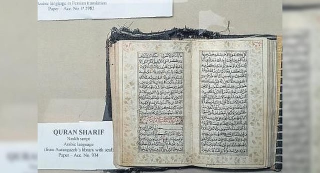 In the central display, housing some interesting manuscripts and miniatures, there is a Quran scribed by Mughal emperor Aurangzeb Alamgir during his Deccan sojourns. Another one scribed by his brother, Dara Shikoh and yet another from his library have been put on display. There is also a beautiful collection of miniature ivory paintings, similar to a passport-sized photograph but hand-painted with great detail. There are portraits of Shah Jahan and Mumtaz Mahal, Nur Jahan, Aurangzeb and other Mughal emperors.