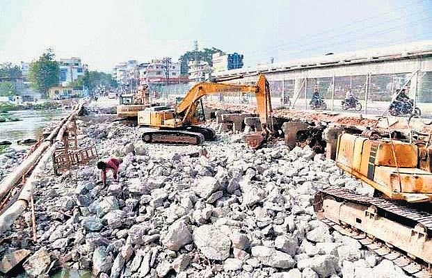 The existing causeway is being demolished to make way for the construction of a new high-level bridge at Moosarambagh.