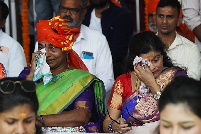 HYDERABAD : As the face of Ram Lalla idol was revealed on a large LED screen at the Nizam College grounds, several devotees dressed in saffron turbans and shawls turned emotional.