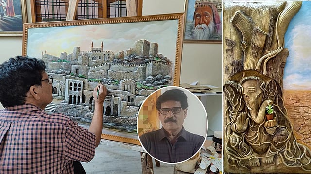 HYDERABAD : The painting on the canvas looks like a normal acrylic painting at first glance, upon closer inspection, it reveals itself as a 3D creation made by combining clay and canvas — clay relief work. This innovative art form is the work of K Muralidhar, an artist with over 30 years of experience. Muralidhar has explored many mediums throughout his career and even developed his own unique type of clay, known as Muralidhar’s Clay, to enhance his art.
