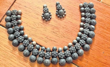 Indian terracotta has a long history in roof tiles, decorative items, and even building houses. Now, it finds expression in jewellery. Uma Macherla, a terracotta jewellery designer and founder of Zumkhi, explains that terracotta jewellery differs from conventional jewellery in several ways. “It is skin-friendly and eco-friendly, made out of natural clay, and doesn’t cause skin rashes or irritations. Additionally, natural clay reduces body heat, adding another beneficial aspect to this type of jewellery.”