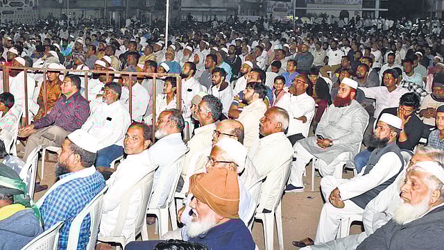 NIZAMABAD : A vibrant crowd gathered for a Mushaira, a popular Urdu literary event, at the Koja Colony ground in Nizamabad on Saturday. Traditionally a public gathering, Mushairas are now often staged in halls, but this event kept the spirit alive outdoors, attracting thousands of attendees.