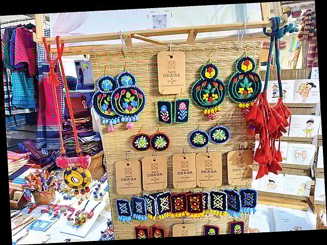 But apart from baskets and decorative pieces, Churn 2024 encouraged entrepreneurs to set up stalls for fashionable apparel and jewellery too. We looked around and spotted Rangila Dhaga, which looked no less than a top fashion boutique with its Gamcha and Kantha embroidery and apparel collections. Founder Kalpana said, “I am from a family of artisans. Back in West Bengal, we actually train and empower women to craft these products.”