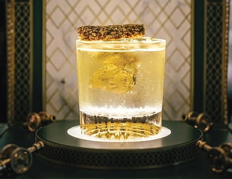 The soothing warmth of the Jewel comes from Royal Salute 21, a single-malt whisky, well, as old as the legal drinking age in this country. Infused with handpicked ajwa dates from Al-Medina in Saudi Arabia and pine nuts from Italy, the spirit weds a boozy blend of truffle-infused vermouth. A whiskey glass with a single gold ice cube welcomes some of this divine gold concoction.