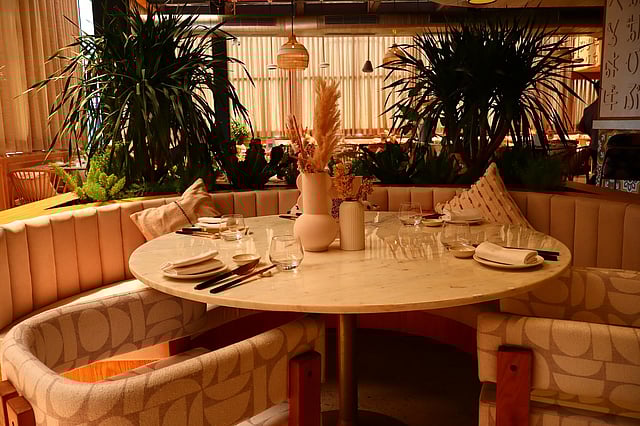 The 195-seater is thoughtfully split into three zones — a cosy indoor dining area, an open-air bar and deck by the pool, and a stylish passage that bridges the two. For those who enjoy dining under the stars, a retractable roof ensures the outdoors stays inviting regardless of the weather. Unexpectedly bohemian in spirit, Akina leans into natural light, lush greenery, and a breezy, relaxed aesthetic — striking a perfect balance between urban energy and tropical calm.