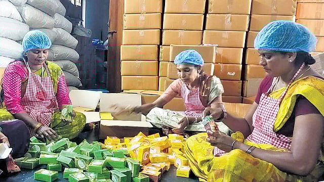 Once daily wage labourers, 11 tribal women from Dummagudem mandal have turned entrepreneurs, setting up a stall inside the temple premises under the brand name Giri. Their organic soaps and shampoos are also supplied to the Girijan Co-operative Corporation (GCC) in Bhadrachalam. “After using our products, devotees keep ordering again and again,” Punem Vijayalakshmi, one of the group members, tells TNIE.