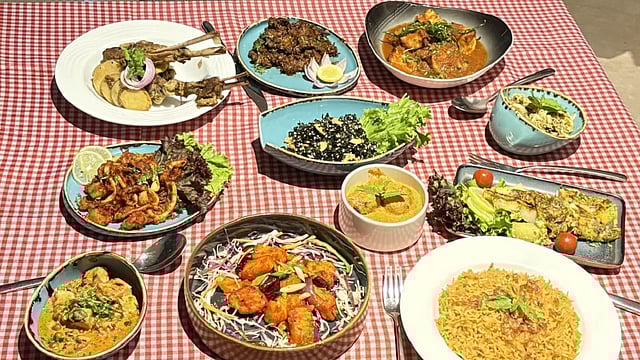 We started the feast with an array of appetizers — Eeda Pattise, which were crispy egg cutlets that made for a satisfying crunch, Chutney Patties, elevated by the zesty chutney; Chicken Farcha, perfectly fried and spiced, and the showstopper, Sparkling Spinach — crispy, slightly seasoned, and unexpectedly addictive. It was the perfect start to an indulgent evening.