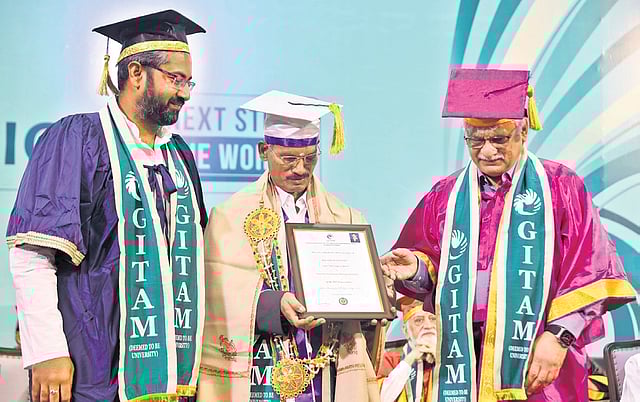 GITAM president and Visakhapatnam MP M Sribharat encouraged graduates to stay future-ready by understanding trends and committing to personal and professional growth. Vice-Chancellor Prof Errol D’Souza highlighted the university’s focus on translational research and interdisciplinary learning to help students address complex global challenges.