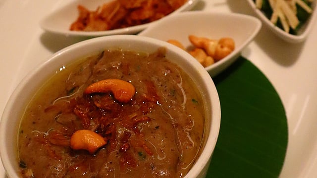 For the main course, we savoured Mutton Haleem before indulging Dal-e-Kanak, Kaddu Ka Dalcha, Kashmiri Dum Aloo, Lahsooni Saag Paneer, Jhinga Ka Salan, Thalassery Chicken Kuruma, and Gosht-e-Marag, accompanied by three types of biryanis and assorted breads. The Dal-e-Kanak was creamy and slow-cooked to perfection, while the Lahsooni Saag Paneer was a rich combination of spinach and chhena. Kaddu Ka Dalcha and Kashmiri Dum Aloo paired beautifully with Shakarkand Ki Puri. The combination of Jhinga Ka Salan and Thalassery Chicken Kuruma with the fragrant chicken, mutton, and jackfruit biryanis was simply divine. Meanwhile, the Rogani Khameri and Gosht-e-Marag proved to be another match made in culinary heaven. In order to aid in digestion, we were served Tamarind and Jaggery Cooler, a spiced drink with cumin and black salt.