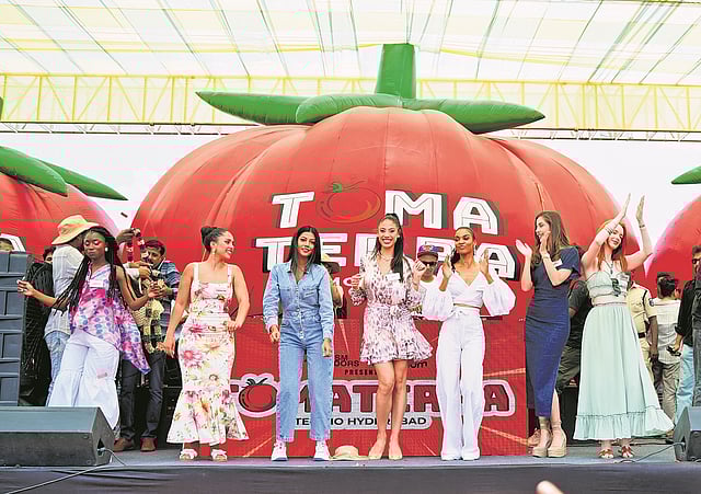 The tomato-soaked revelry took a glamorous turn midday as members of the Miss World team, currently touring Telangana, made a surprise appearance. Representatives from Spain, Italy, Jamaica, Sri Lanka, Scotland, and more greeted the crowd from the main stage, dancing along with the DJ and soaking up the celebratory spirit of Hyderabad.