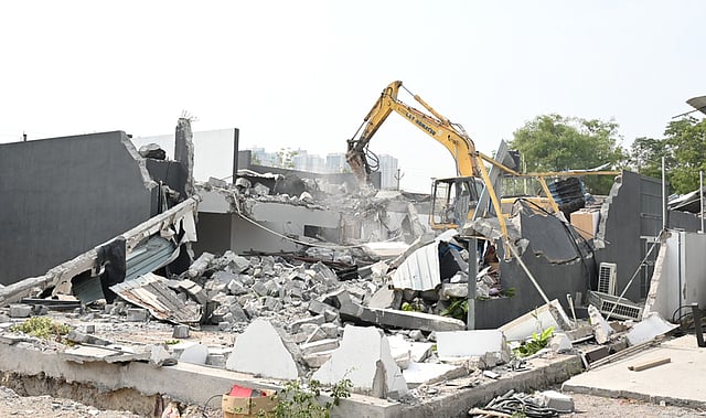 In a separate operation, HYDRAA officials razed illegal constructions in Dollar Hills, Puppalaguda, under Manikonda municipality limits. Plot owners had complained of unauthorised buildings on roads and parks. Ranganath called both parties for a hearing and verified court-submitted documents.