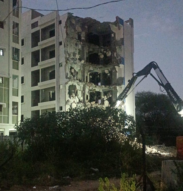 HYDERABAD: In a major encroachment drive, the Hyderabad Disaster Management and Asset Protection Agency (HYDRAA) task force demolished an illegally constructed five-storey building on government land in Miyapur on Saturday.