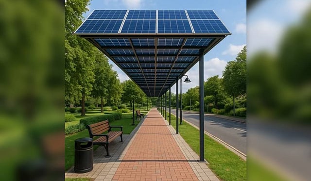 The footpath will use recycled plastic paver blocks made from 65–70% post-consumer waste such as MLP, LDPE and LLDPE. They are designed for high pedestrian loads and follow a modular zig-zag pattern for durability. Solar infrastructure will include 600 Wp modules, 10 kW grid-tied inverters, raised mounting structures, auto-cleaning systems and full AC/DC safety components.