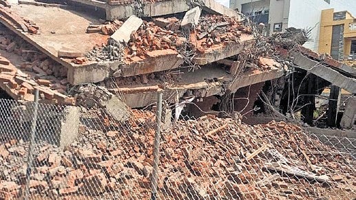 HYDRAA demolished five G+3 buildings under construction and two single-room structures. Two occupied buildings were left untouched. Despite GHMC issuing demolition orders in 2024, construction had continued.