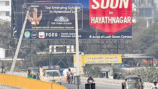 HYDERABAD: For years, Hyderabad’s peripheral areas — now brought under the Greater Hyderabad Municipal Corporation (GHMC) following the merger of 27 urban local bodies around the Outer Ring Road in Rangareddy, Medchal-Malkajgiri and Sangareddy districts — have witnessed an unchecked proliferation of oversized hoardings, unipoles and unauthorised advertisements.