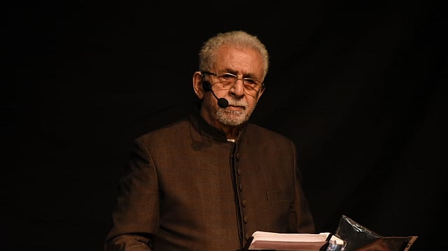 When Naseeruddin finally walked onstage, dressed simply in a brown sherwani, the courtyard erupted in applause. There was no dramatic announcement, no flourish — just his quiet presence. His first request was disarmingly simple: that the audience not view him through their phone screens. Almost instinctively, the courtyard complied, settling into a collective stillness.