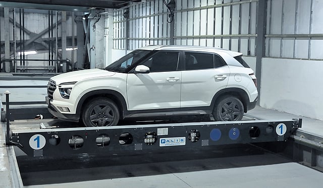 The automated puzzle parking system operates entirely through sensors, with no human intervention. It classifies vehicles such as SUVs, sedans and small cars and parks them on designated floors, without using pallets, making the process smoother and more efficient than mechanical systems.