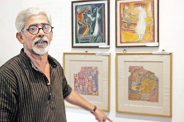 The works done over a long period of time has an experimental quality and they deal with a wide range of subjects. The akademi award winning artist credits his camaraderie with an eclectic class of people like Mammootty and documentary director K P Jayashankar for the artist in him.