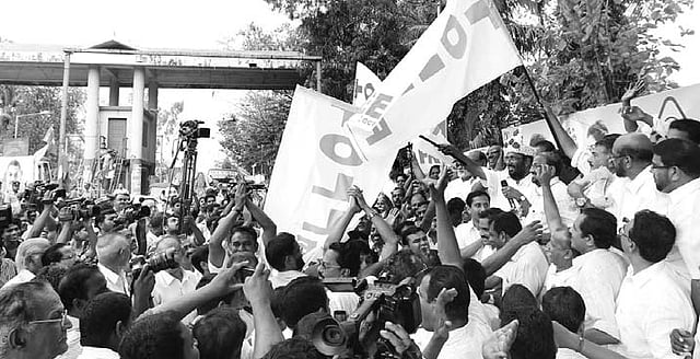 Firecrackers were burst, sweets were distributed and loud cheers, drumbeats and sloganeering came from the crowd as GCDA Chairman N Venugopal walked in to seal the toll booths.