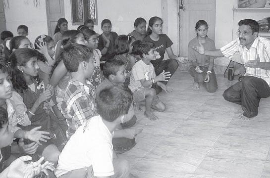 “I love to be with children. They quickly acquire skills by diligent practise if we succeed in evoking an interest in them,” he says. Admitting that it is not easy to bring special kids on track he says, “If we are confident enough, we can improve their communication skills and behaviour pattern. Apart from the basics in drama he imparts yoga techniques, body exercise and speech exercise.”