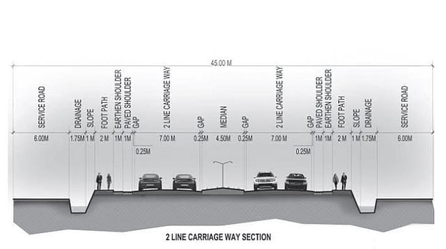 Many people have come out with exaggerated figures, but in most areas, 45 m have already been acquired. The road specifications are fixed by National Highway and the Road Congress.