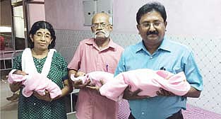 The triplets, two boys and one girl, were born to Sujatha, wife of Sasidharan of Muttuvassery, Kizhakkambalam, 28 years after marriage. She was under the treatment of Dr Sabine. The babies were delivered on February 1, by cesarean section.