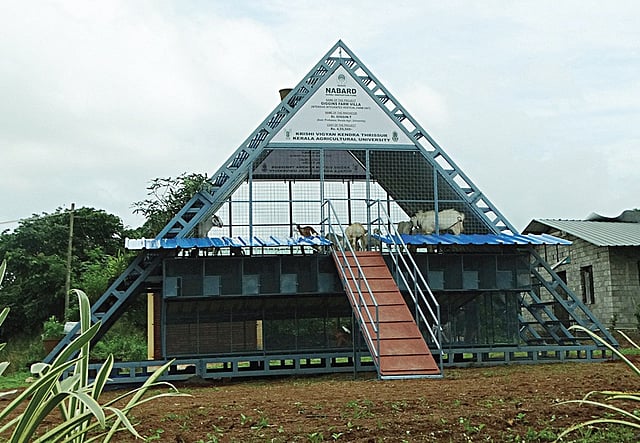 "The design of the Farm Villa is unique as animals can be housed in spacious, technically designed compartments. The roofs of the compartments consist of galleries where vegetables, seeds and saplings can be reared. Special provision has been made to collect animal and bird droppings, in order to convert them into organic manure. The entire structure has been envisaged so as to protect the interests of farmers," said Giggin. "Kerala Horticulture Mission director K Prathapan said the project was being implemented as a model project. Now, it is an engineering structure that needs to be fine-tuned before implementing as a sustainable integrated vertical farming unit nationally," he added.