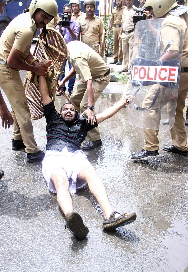 KOCHI: The Kerala Students Union (KSU) march to the City Police Commissioner’s office on Saturday in protest against the fee hike for self-financing courses turned violent. Several KSU and Youth Congress activists were arrested and removed from the spot after they tried to force their way inside the office. The police used water cannon to disperse the irate activists. The KSU district committee took out the march by noon in protest against the alleged police violence on its activists during the strikes across the state against the fee hike.