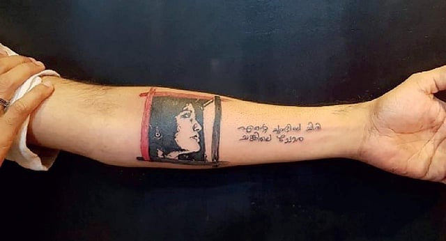 In the tattoo, Santhi’s picture appears in a framed image with a caption on its side reading ‘Ente Chundile Chiri Chankile Chora’. The image has gone viral and is getting warm response from people. The tattoo was inked by Ink-Fected Tattoo Studio. It’s owner Sujeesh P S was appreciated for his work.