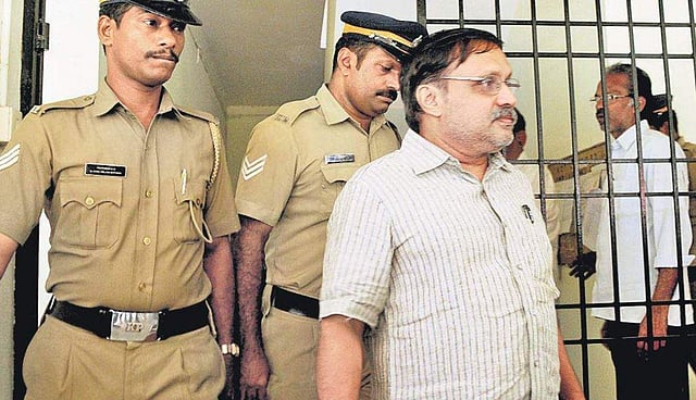 T O Sooraj, former Public Works Department secretary and an accused in the Palarivattom flyover graft case, being brought to the Vigilance Court, Muvattupuzha, on Thursday | A Sanesh