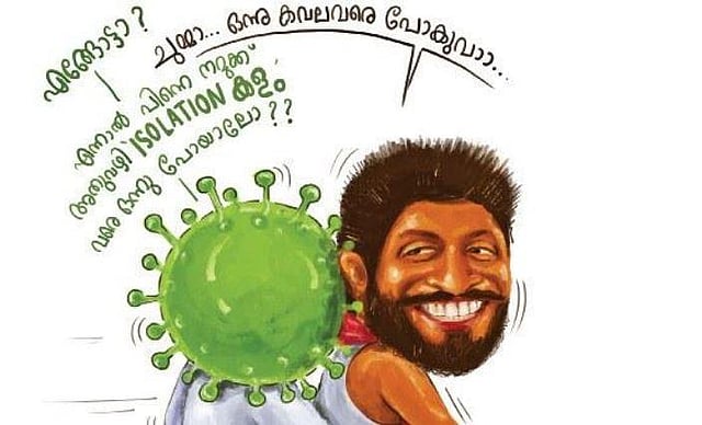Take for his instance his various conceptions on Covid-19, the ensuing lockdown and being in quarantine. Cleverly incorporating Malayalam movie characters with dialogues on the virus, staying safe and precautionary measures to be followed, Arosh has managed to strike a chord with his audience. The epic scene in which actor Sreenivasan takes Thilakan on his cycle in ‘Nadodikaattu’ has the virus illustration in place of Thilakan’s head. In a conversation between them, it is implied that one might as well go to the isolated ward if he/she wants to venture out. “The primary aim is to reach the common man. Therefore, I chose characters and movies that were familiar to the people of Kerala,” he says.