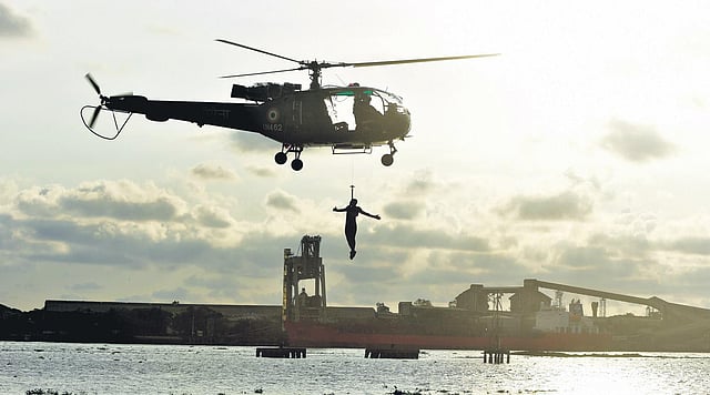 The demonstration commenced with a simulated combat beach reconnaissance and assault, using inflatable watercrafts by marine commandos. The 90-minute demonstration included special operations by them, from air and water, operations and helobatics by ALH and Chetak helicopters and slithering operations demo.