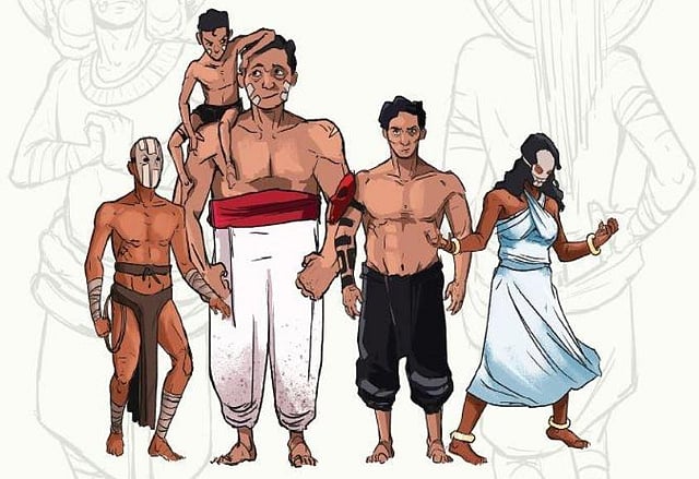 His proposed comic series titled ‘Koottam’ features a squad of five Malayali vigilantes with mystical powers. In another attempt, Kishan has rendered his own style to Lijo Jose Pellissery’s creations, turning his protagonists from various films into an eclectic ensemble of comic avatars.