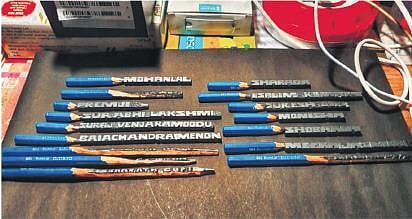 Using Artline pencils worth `30, Rajesh has managed to craft over 50 figures in letters. His recent work has managed to fetch him a place in the India Book of Records. Rajesh who is a self-acclaimed film enthusiast carved the names of 16 actors of the Malayalam film industry who bagged the National Film Awards in chronological order.